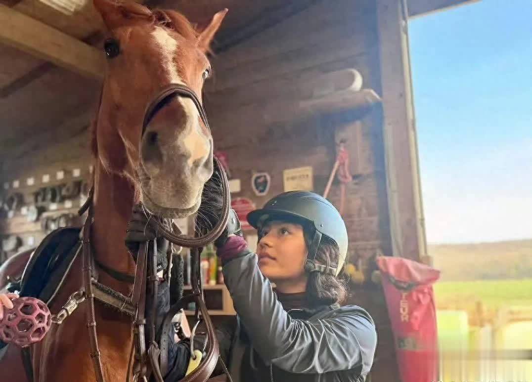网友们在评论区炸开了锅:“我的天,霓娜现在也长得太漂亮了!”“这五官真的绝了,自带眼线,妥妥的电影脸。”更有人注意到一个细节:随着年龄增长,霓娜身上的“中东感”越来越重了。那种美不是千篇一律的网红脸,而是一种带着神秘感的、野生的美。尤其是她骑马时的照片,身姿挺拔,眼神犀利,又美又飒。